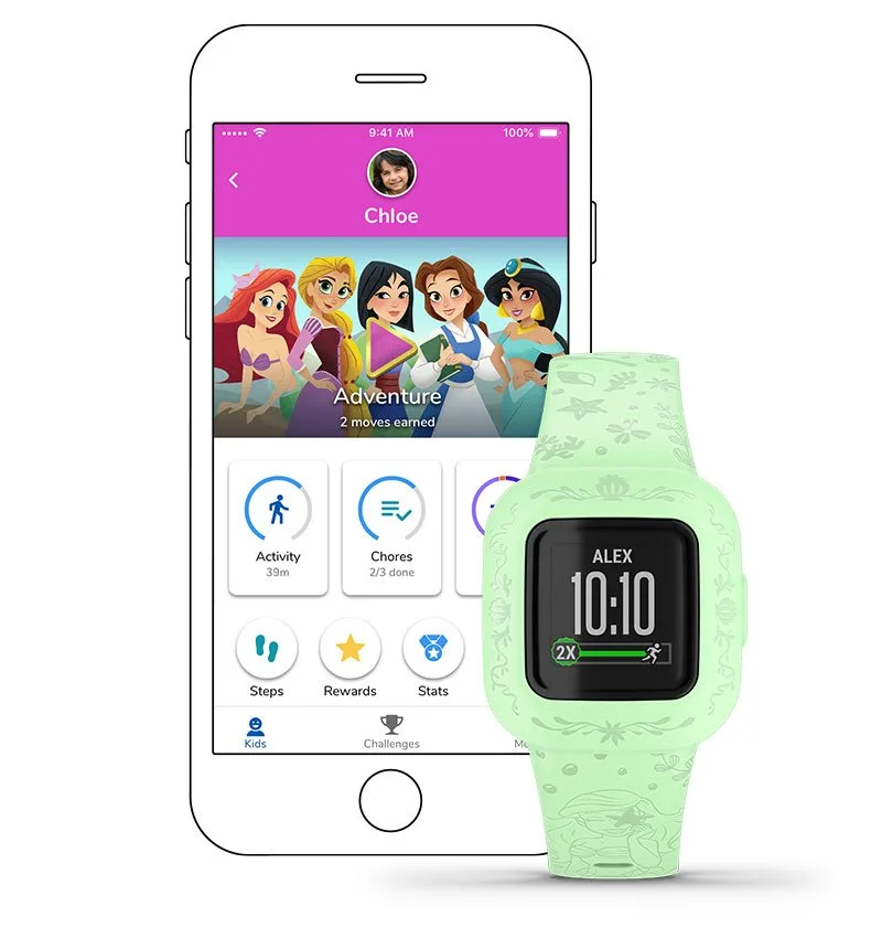 Активный образ жизни полезен для каждой принцессы и каждого ребёнка. Приложение Garmin Jr.™ поощряет детей двигаться с помощью интересных фактов.